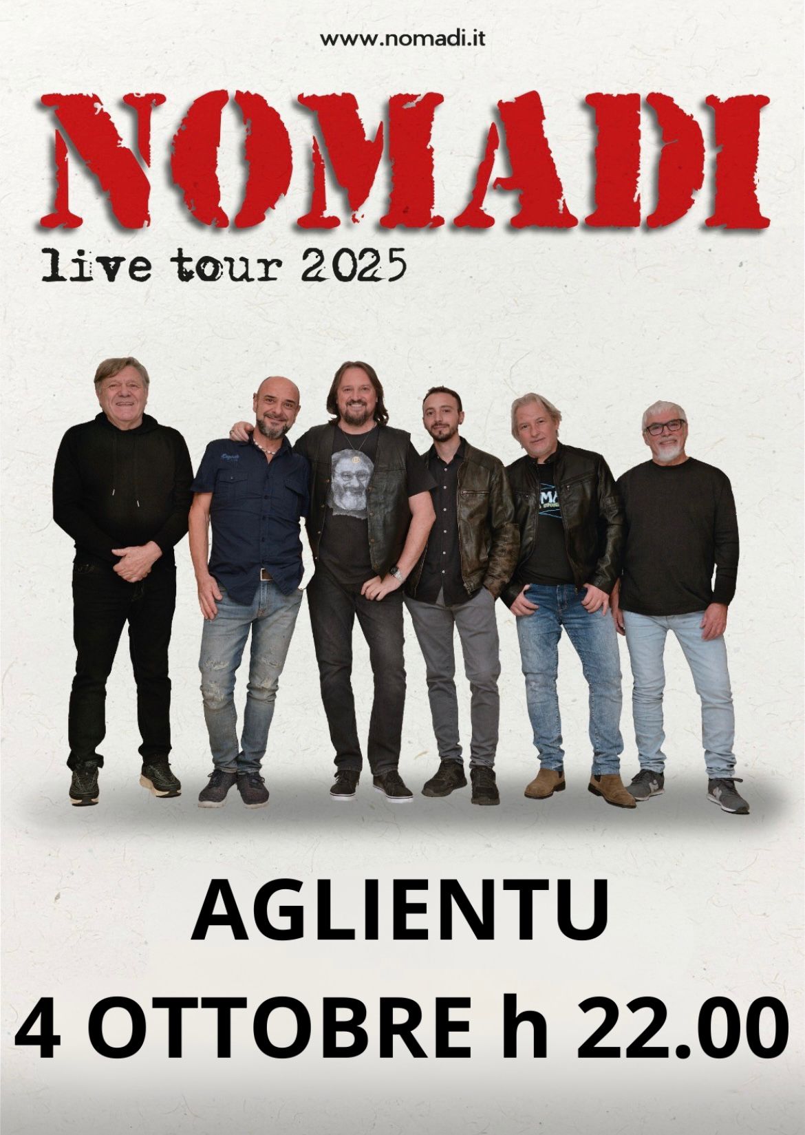 Grande attesa ad Aglientu per il concerto dei Nomadi, in programma sabato 4 ottobre 2025 alle ore 22:00, nell’ambito della tradizionale Festa Patronale di Santu Francìscu.